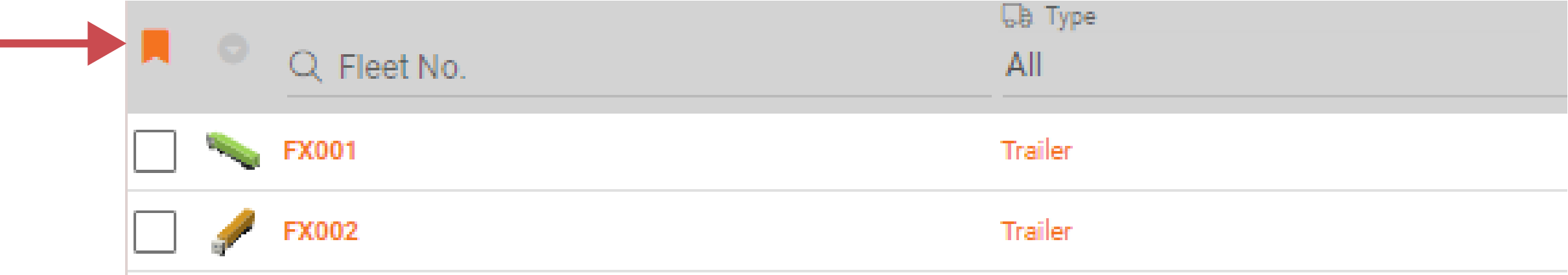 Klicken Sie das Lesezeichen 🔖 in der linken Ecke der Flottenübersicht oder Wartungsübersicht.