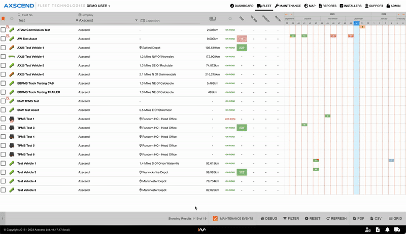 Sie befinden sich in der Flottenübersicht oder Wartungsübersicht.
