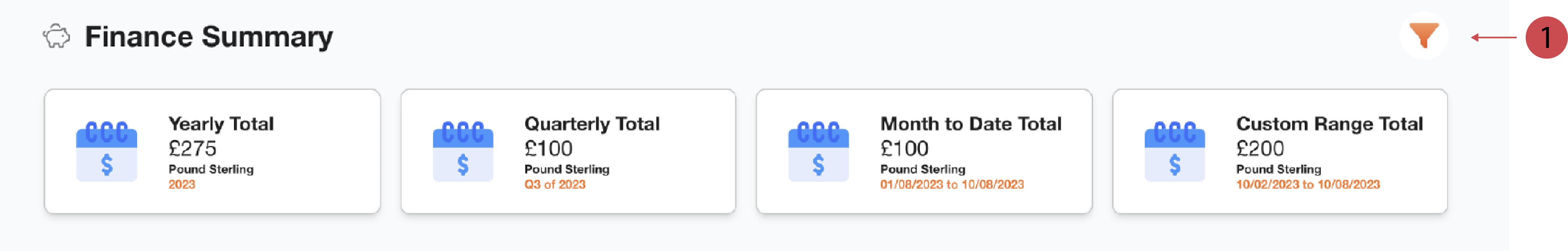Sie können die Finance Summary Widgets filtern, damit Ihnen Ihr gewünschte Zeitraum angezeigt wird.