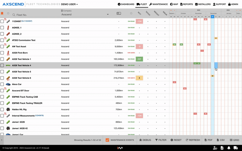 Suchen Sie in der Flottenliste nach dem gewünschten Fahrzeug.