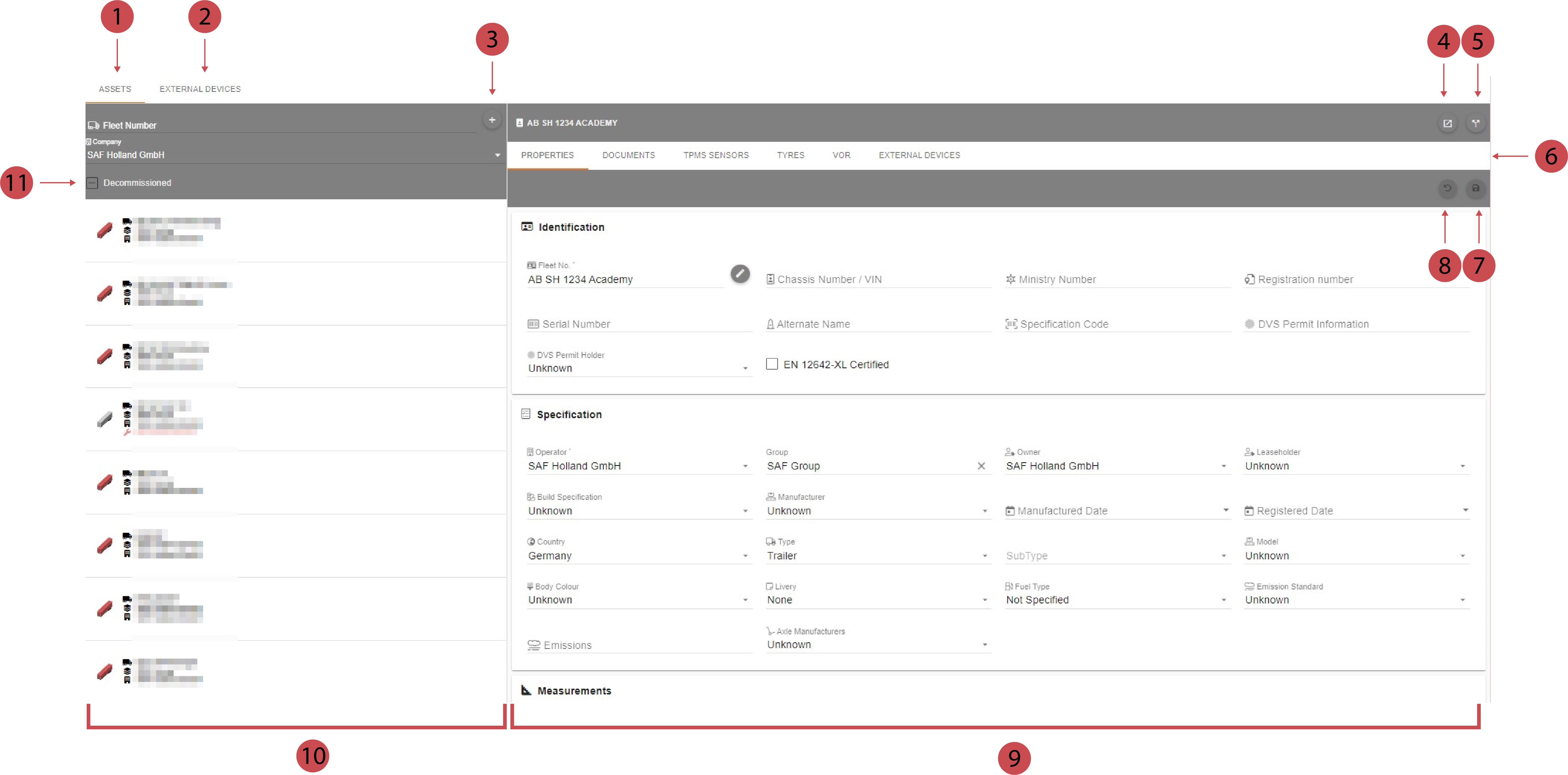 ![]() | Fleet List Every asset of your fleet is listed here. |