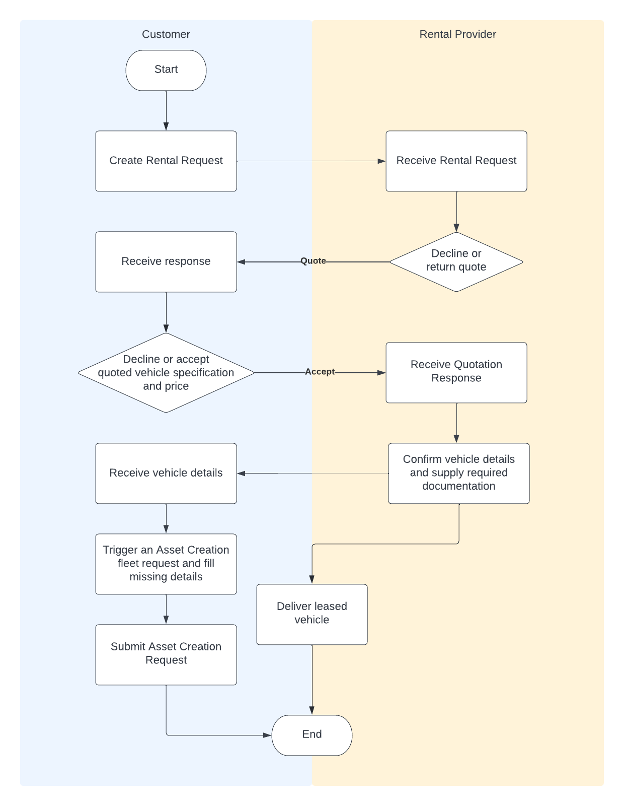 In cases where quotations have been declined by the rental provider or the customer, there might be a loop back to an earlier step.